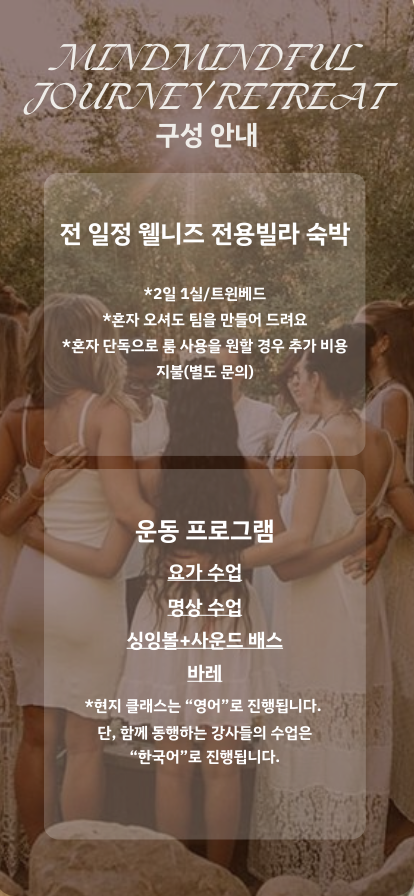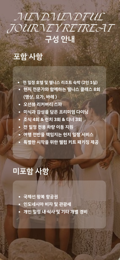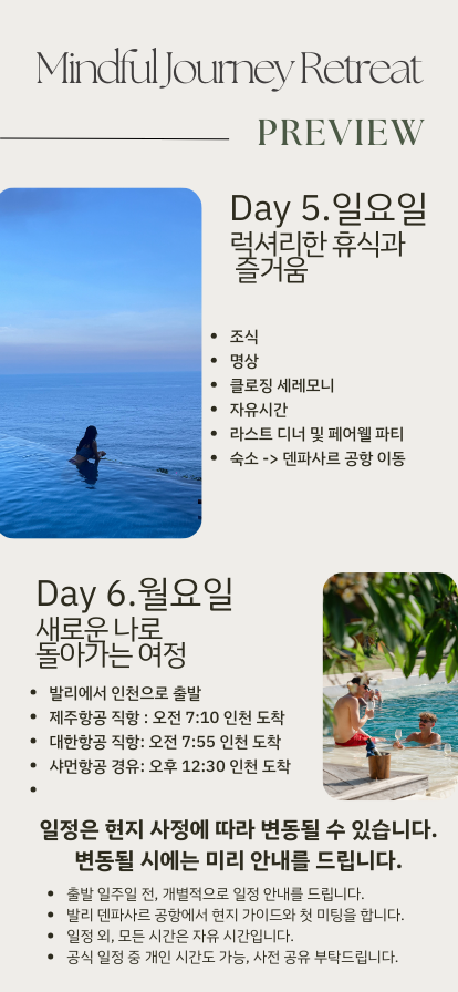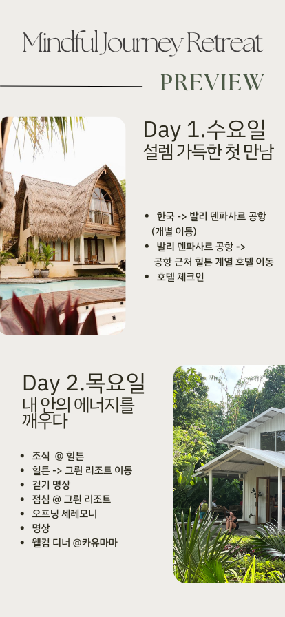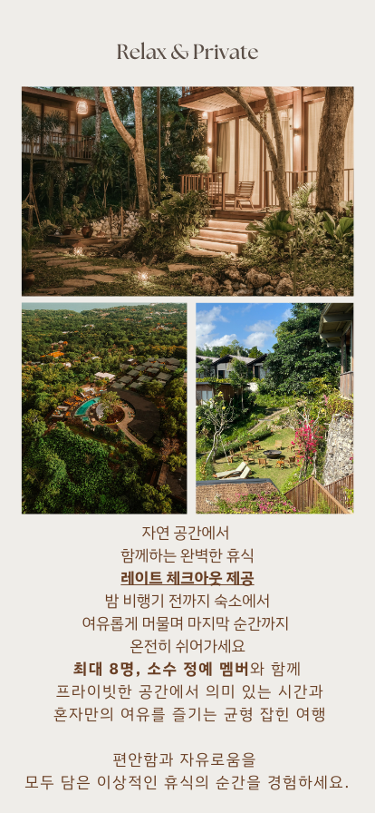 웰니스 리트릿 전용 리조트 및 현지 가이드가 안내하는 우리들의 일정