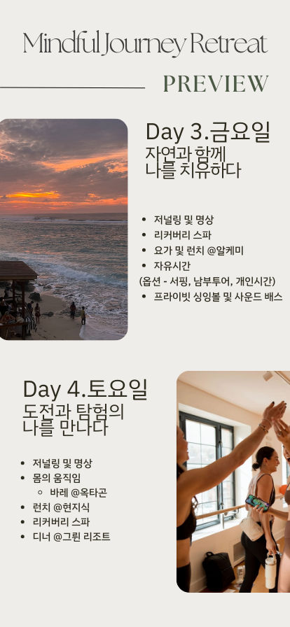이번 리트릿을 통해 몸과 마음의 균형을 찾고,